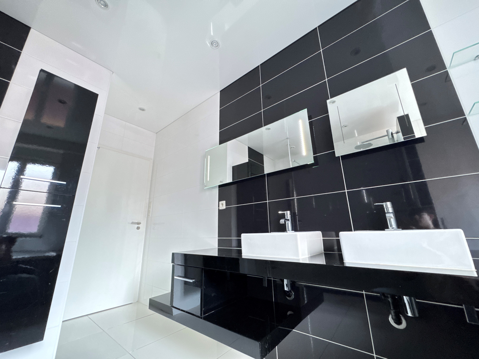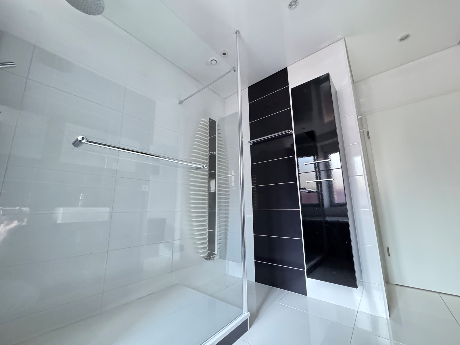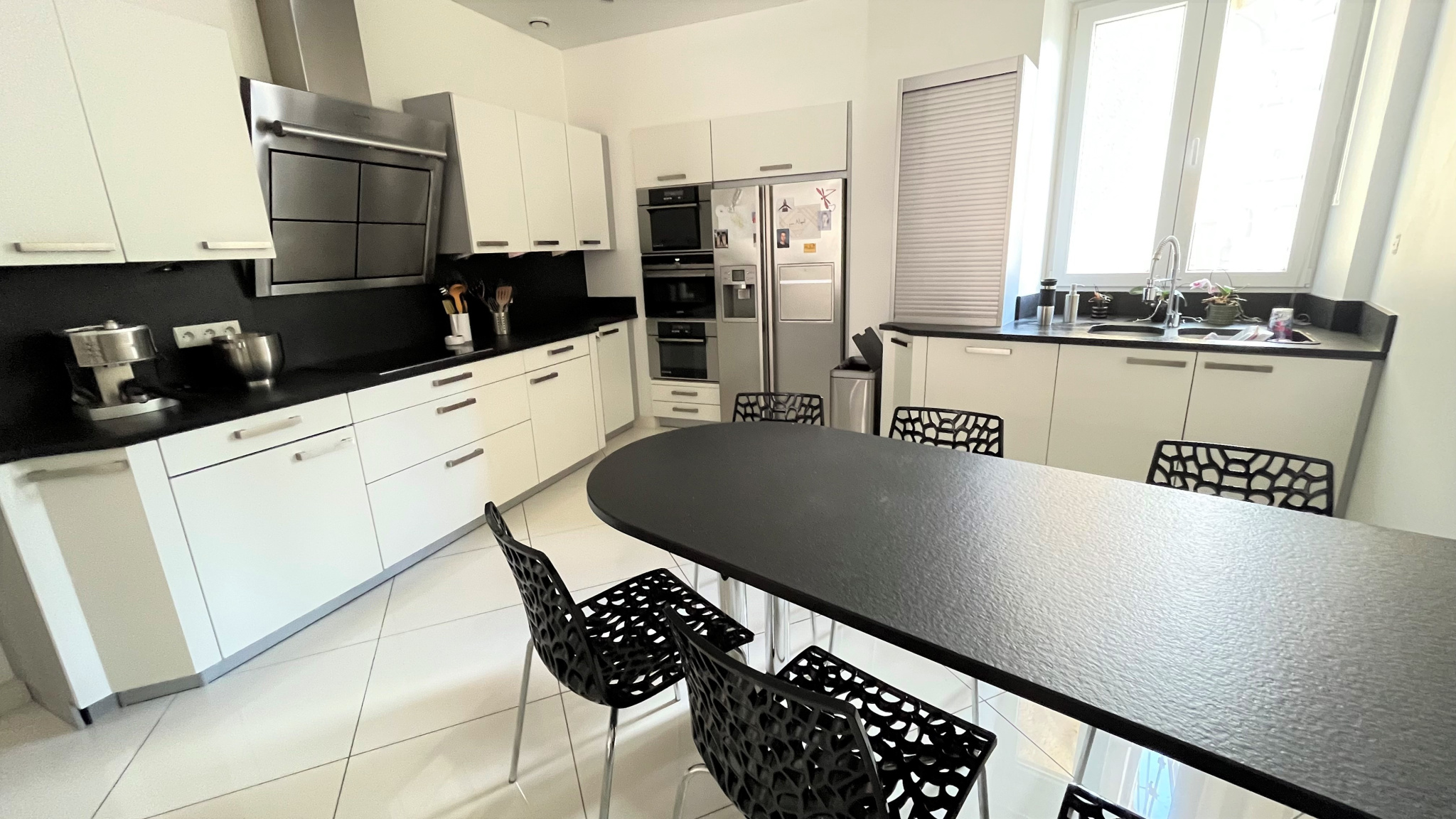 entrée, cuisine équipée (four, plaques, hotte, frigo, micro-ondes, lave-vaisselle, table et éléments), salon-séjour avec accès petit balcon, 5 chambres, 2 salles d'eau aménagée avec meubles double vasque, sèche-serviettes et rangements, 2 toilettes dont 1 avec lave-mains, buanderie avec lave-linge, sèche linge et rangements.