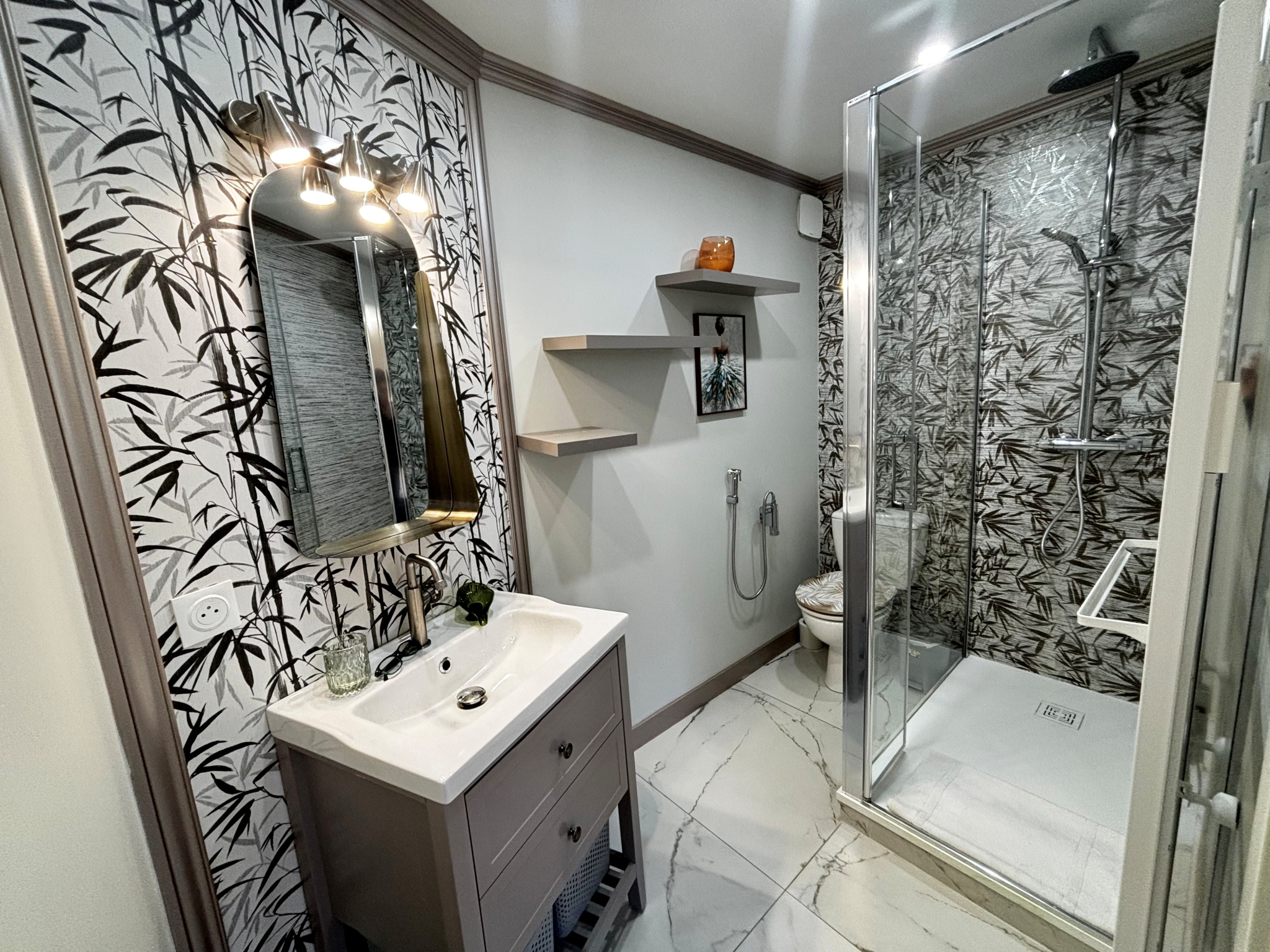 L'appartement bénéficie de prestations haut de gamme : carrelage, peinture, salle d'eau, cuisine, chauffage refait à neuf et isolation intérieure renforcée.
