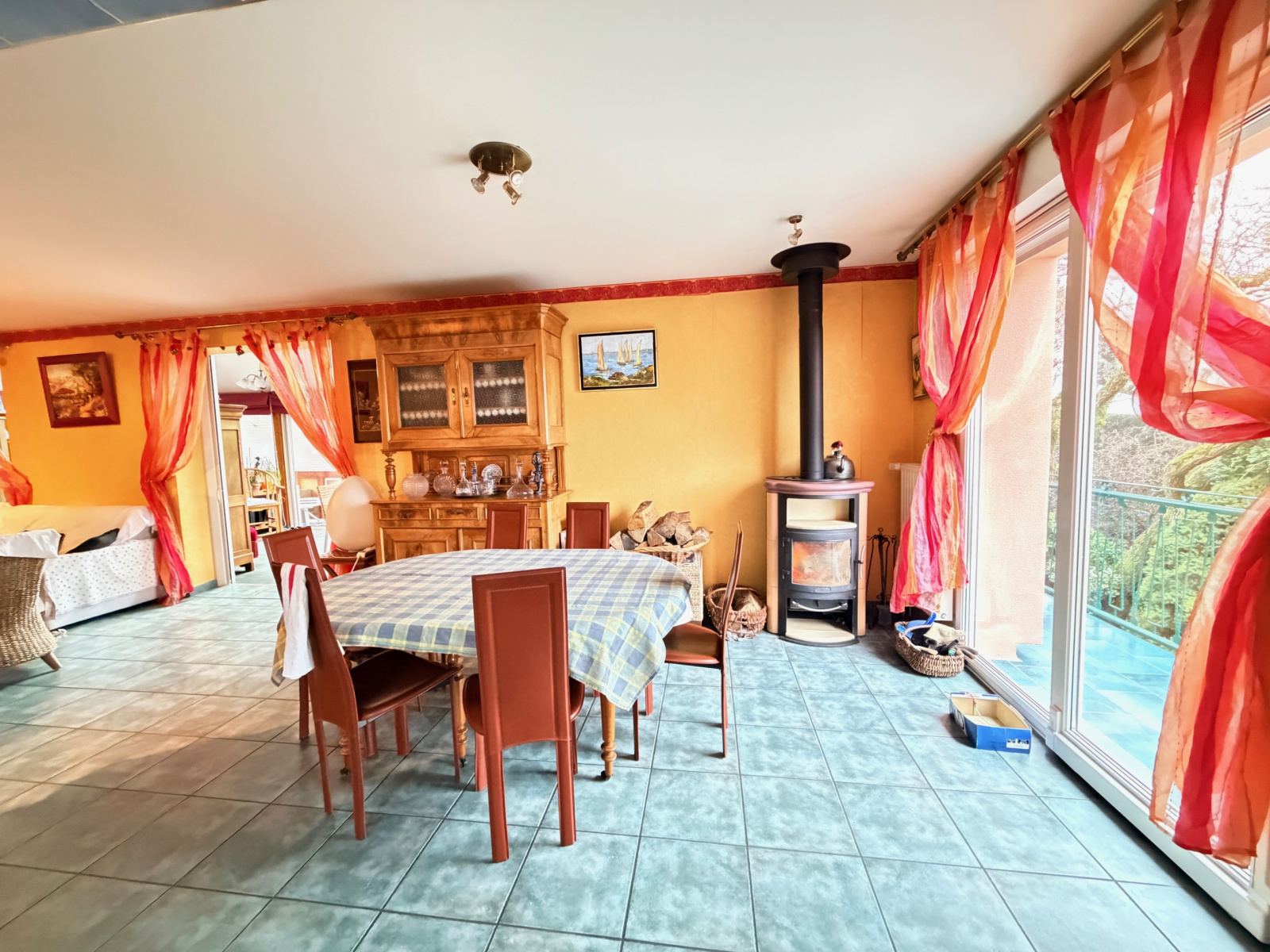 La maison bénéficie d'une isolation extérieure récente, chaudière à granulés et poêle à bois.